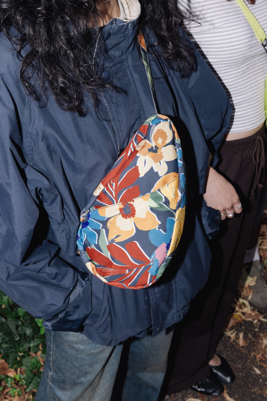 Cool camo, clean lines. A modern take on a classic pattern with a subtle mesh overlay. It comfortably fits your phone, wallet, keys, and sunglasses, with extra room for a small water bottle or compact umbrella. Made from 100% recycled polyester, making this crossbody sling durable, lightweight, water resistant and machine washable!