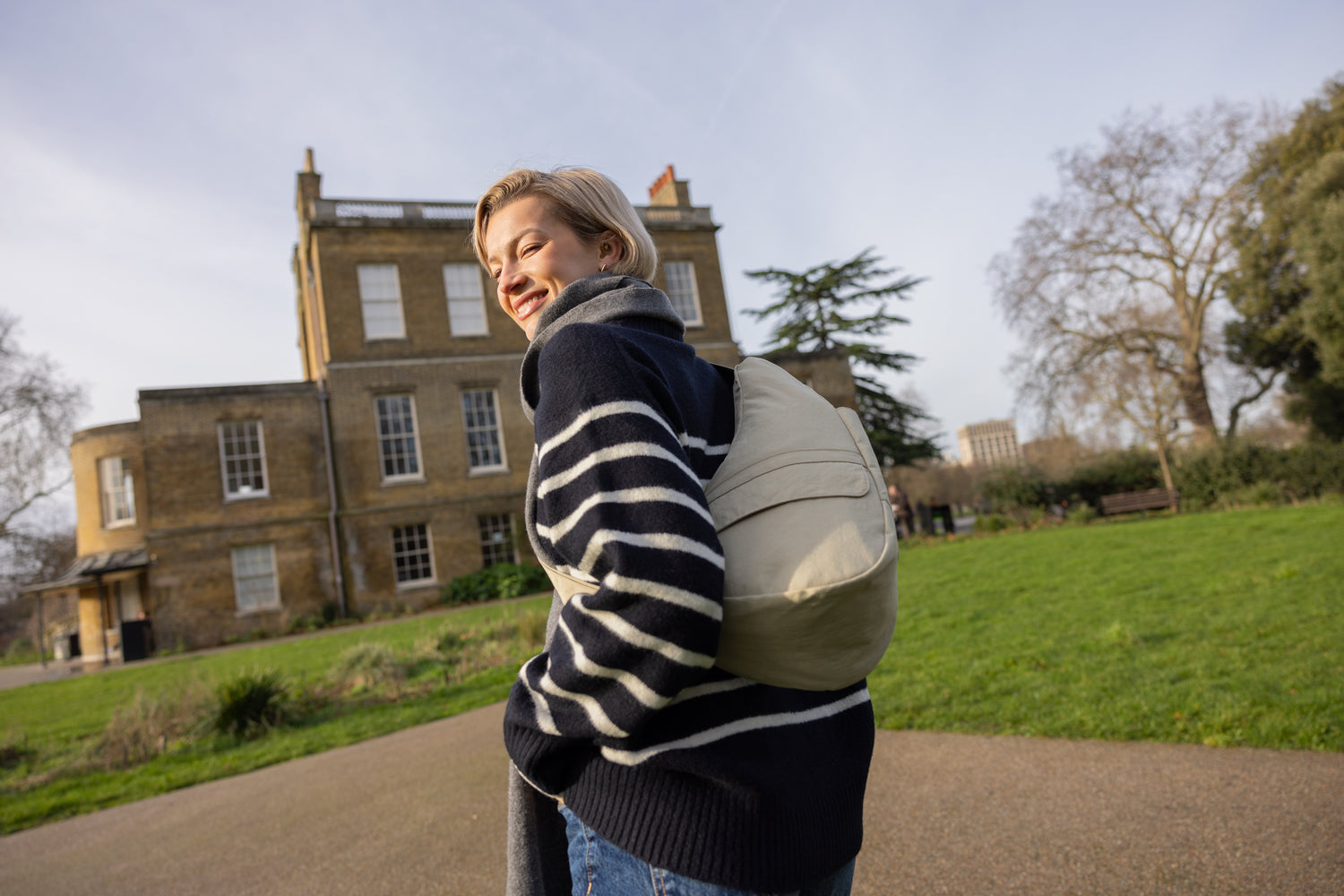 The unique shape of the bag is designed to contour to the curve of your back minimising the strain on your spine, neck & shoulders. The main zip of the bag sits against your body meaning your belongings are safe and accessible only to you even when wearing the bag. This makes it not only great for everyday but for travel and commuting too.